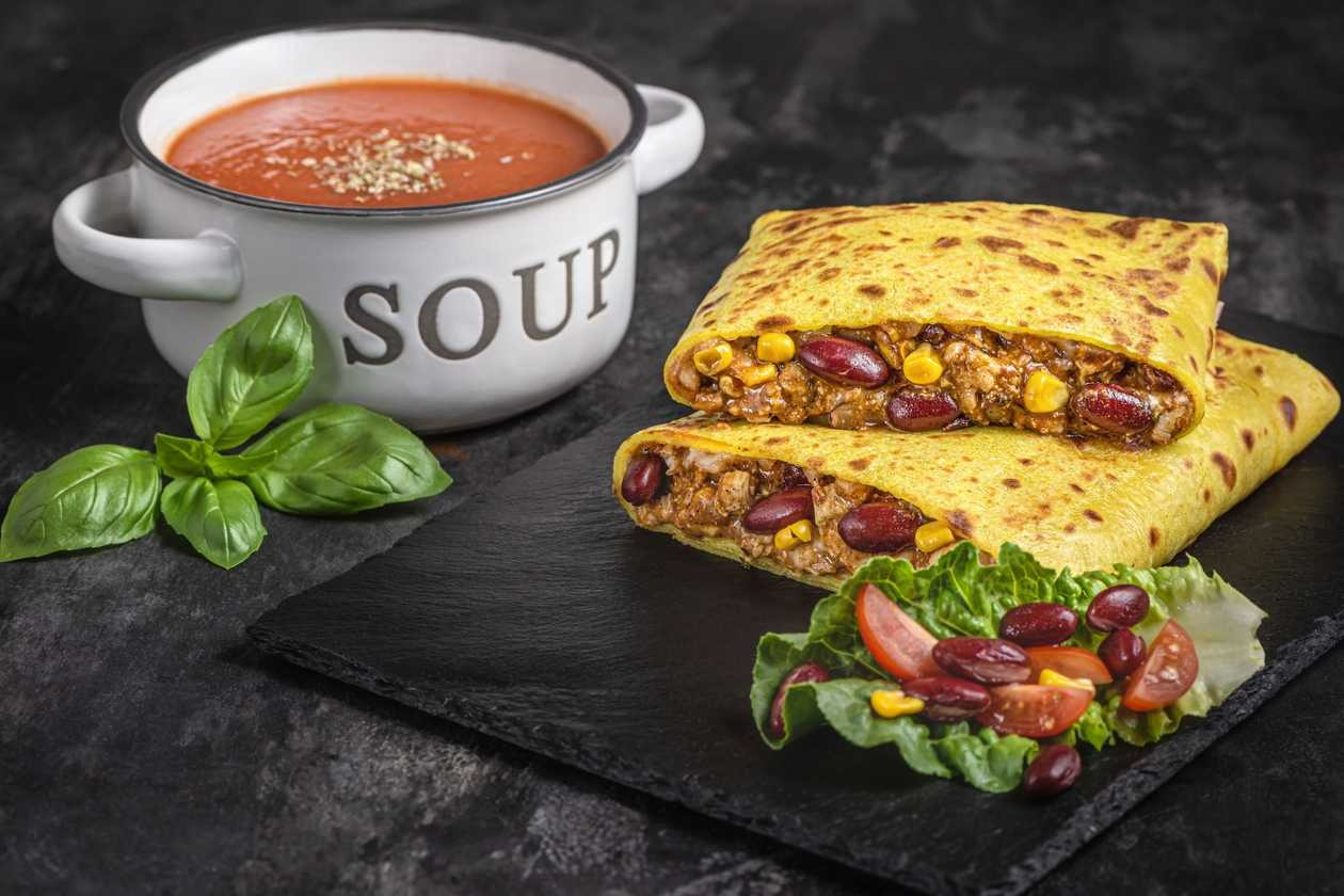 Feta, szpinak, suszone pomidory, sos czosnkowy